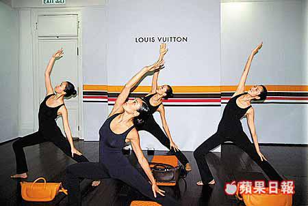 超級名牌LouisVuitton(LV)昨日於堅尼地道香港設計中心,舉行將於十月發售的Epi手袋展,請來瑜伽高手黃佩霞及三位名模陳嘉容、歐陽妙芝及李嘉慧,即席示範瑜伽動作。
