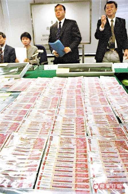 據悉,綽號「英傑」的陳×健,當時在屋內負隅頑抗,將大批鈔票從窗口擲落街。警方事後在單位內及樓下共撿獲二十多張的假一百元紙幣、一部掃描機、影印及列印三合一的打印機、五十二張每張印有三張偽鈔的A4紙及用來製造偽鈔的母版、切紙機等工具。稍後,警方在油麻地、橫頭磡、沙田顯徑邨、屯門等地同時展開行動,其中在廟街一家舞廳,搜出五百張假一百元紙幣,並在其他數個住宅單位內撿獲少量百元偽鈔和假身份證,行動至昨日中午十二時結束。