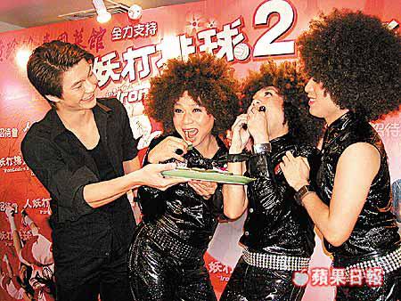 泰國演員冬、陰、功、隆婆(CoCo)同吳君如及杜汶澤等,噚日喺銅鑼灣一間泰國菜館宣傳下周四上映嘅新片《人妖打排球2》,幾位泰國演員重即場表演歌舞助興,大搞氣氛。