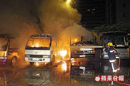另外,沙田源昌里一所小學對開的旅遊巴露天停泊車位,昨日凌晨三時四十五分,現場一輛二十四座旅遊巴着火焚燒,火勢猛烈,迅速蔓延,消防員接報到場時,火勢已波及附近四輛二十四座旅遊巴及一輛大型旅遊巴,消防員經近半小時撲救後將火勢救熄,但六輛旅遊巴已嚴重焚毀,消防員調查後認為火警有可疑。