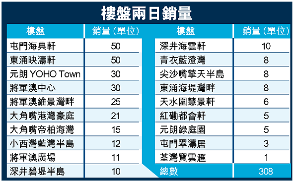 但最近發展商見一手銷量看俏,便矢言加價,結果導致最近半月的交投開始回落,對上周六及日,已較之前一周減逾一成,過去兩日更縮約32%。多個新盤如YOHOTown、映濤軒及屯門海典軒等,銷情已回軟。