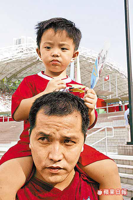 早前因「沙士」,兒子困在家好悶,現在是時候帶他出來活動一下,感受球賽的熱鬧氣氛。他覺得這場波很成功,因為全場爆滿,球迷反應熱烈,這場面很久未見了。
