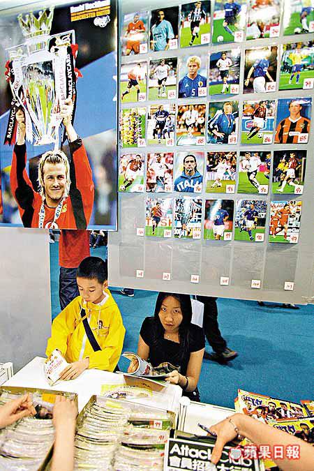 國際球隊利物浦及皇家馬德里相繼來港,掀起足球精品搶購熱潮。「天智建藝」負責人羅先生說,印製了六百套「皇馬」明信片,昨已售出二百多套;球星海報也被搶購,讀中四的鄭小姐見到球星碧咸海報立即尖叫,火速買下來。