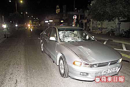 【本報訊】屯門青山公路與藍地大街交界處,昨凌晨發生奪命車禍。一名年近六旬的男子橫過馬路時,遭一輛私家車狂撞飛彈上擋風玻璃,連人帶車衝前三十米,傷者才翻滾倒地重傷昏迷,送院搶救後證實傷重不治。死者兒子得知噩耗後情緒激動失控,揚言會報仇。 記者:李旭基、陳天華