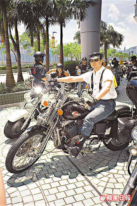 畢架山一號二期整咗個以電單車HarleyDavidson做主題嘅示範單位,哈利迷長實趙國雄,噚日就發動一班志同道合嘅人士,三十部大大架哈利電單車,晨早喺紅磡國際都會平台集合,然後由下屬郭子威鳴槍主持起步儀式,車隊朝畢架山一號地盤進發,再返紅磡。但唔知點解老趙全程都係坐人車尾,自己唔揸。