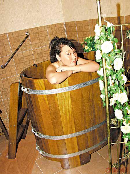 這個古色古香大木桶加入人參當歸,可以行氣活血,加速新陳代謝,排走濕氣、汗水外,更有止痛和增強抵抗力功效,亦能美白嫩膚,增加皮膚光澤。