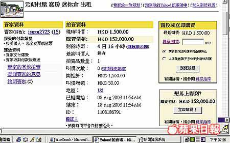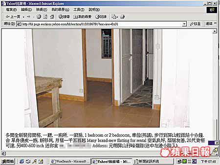記者跟進村民投訴,根據互聯網上資料,賣家以「元朗村屋套房迷你倉出租」名義進行公開拍賣,賣方列出「現時叫價」為HKD1,500、購買價格為HKD152,000;賣方亦張貼出招租村屋照片。而照片下更列明:「多間全新裝修間隔,一廳,一廁所,一廚房,一bedroom(睡房)有車位……月租一千五百」等。