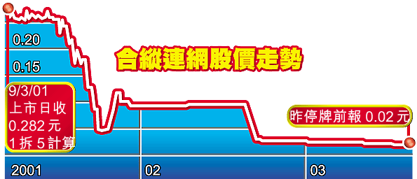 合縱連網主要經營數據中心業務,是電盈透過CyberVentures作出的其中一項投資,01年趁科網股熱潮在創業板上市,當時的招股價為1.28元(未拆細前計),集資1.4億元。根據合縱連網截至今年6月底止中期業績,電盈目前持有該公司55.5%股權、創辦人譚威強持20.53%、恒基發展(097)持8.89%、管理層持7.6%,餘下7.48%為「街貨」。電盈發言人昨日對事件不予置評。