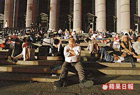 不過,紐約市面混亂情況頗有九一一襲擊後的影子——數以千計的人被困大廈升降機和地鐵內,四萬名警員和消防員徹夜出動四處救人;地鐵和交通燈停頓,公共交通只餘巴士和渡輪,路面嚴重擠塞;數以百萬計人士由摩天大廈的辦公室步行下樓,冒着攝氏三十三度高溫徒步回家或流落街頭,布魯克林大橋擠滿了人;巴士站和電話亭前大排長龍;聯合國總部也漆黑一片。一些人乾脆到酒吧在燭光下享受半涼的啤酒,聚在收音機前聽最新消息。紐約市酒吧餐廳全面禁煙的法例,此刻沒有人理會了。