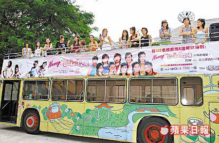 女子組合Cookies噚日喺九龍塘坐開篷巴士幫十位候選新成員拉票,四位Cookies成員重送咗隻最新唱片畀候選者。