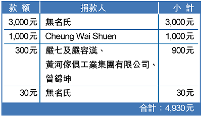 兩個多月前,三十六歲的蘇太家中電線短路失火,全屋被焚毀,由於其任職地盤散工的丈夫開工不足,一家五口包括三名十至十七歲子女生活十分緊絀。 意外發生後蘇家無力重建家園。蘋果基金曾撥款一萬元緊急援助金予他們應急。近日蘇家另獲善長捐款合共四千九百三十元。 捐款編號:C0961 暖流熱線 電話:29908688 傳真:23702192 電郵:[email protected] 網址: http://www.charity.atnext.com