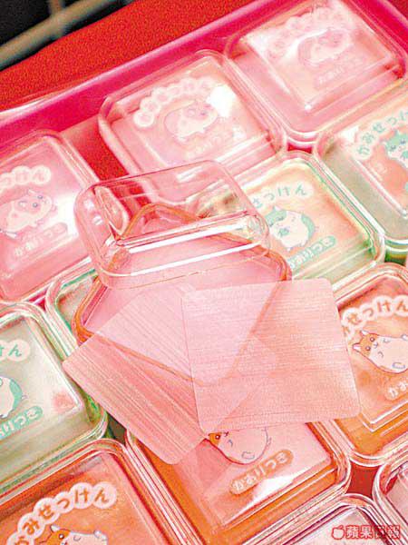 面具雖然經典,但我則愛新奇玩意,這款名為肥皂紙,面積大約2cm×2cm,細細張帶出街夠方便,只要濕水肥皂紙變成肥皂,一盒4張,慳啲用啦!