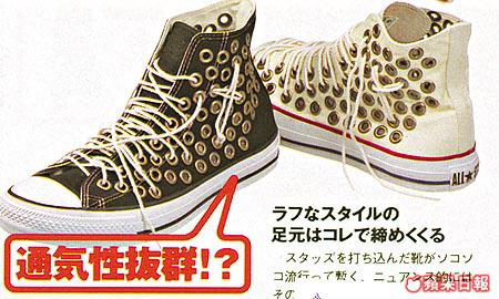 誰說手作仔沒出頭!首先有來自維也納及柏林的二人組BLESS,所改裝再造的adidas就是時裝?潮流界的經典。BLESS的成功確實給後人帶來無盡的啟發,就像FATTY&NUTTYBROS.與IRISH此兩個東洋創作單位,擺明車馬就係Sell手作仔呢招,將Converse的AllStar徹頭徹尾來個Reproduction,假借着70年代末反叛的PunkMovement作概念,大玩改裝、勁玩自殘,繼而來一招「完全受注」生產來盡顯產品夠矜貴。不過香港Cons.代理回應一定唔會返呢批貨,有癮者惟有寄望水貨佬啦!
