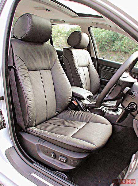 座艙空間見寬敞外,前後兩排皮椅剪裁亦見妥貼舒適,而前排除備有全方位電控外,廠方重新增有電控腿墊伸縮,形式跟高性能M3或M5跑車相若,以提供更佳嘅腿部承托,唔怕長途車有容易疲倦嘅問題。再者,頂級版重附加有前排頸枕,係源於7系嘅設計,既舒適重加有保護力㖭!講到設備方面,不可不提一套屬經改良第2代i-Drive裝置,經過一輪測試後,發覺簡化模式更易於操控,指間更可以操控多媒體影音、冷氣、電子導航及免提電話等裝備,還有一套八個不可或缺嘅SmartAirbags安全氣袋連充氣簾幕㗎!
