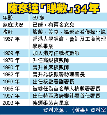 陳彥達將於九月年屆六十歲時退休,昨日他在港台節目《香港家書》及接受商台訪問時直斥其他部門及立法會議員不支持審計署工作,他說工作雖然辛苦,但令他最不好受的是當局不太重視審計署工作,「這份工作既吃力又不討好,老實說,四年前,我曾一度考慮是否應該提早退休。」不過他說基於使命感,決定不提早退休留下為政府「睇住盤數」。