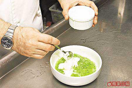 很多法國餐廳都有同類的扒羊鞍菜式,不過,最傳統的法式扒羊鞍應配芥末香草汁,所以芥末香草汁的做法非常講究,Andy說最重要過程是撞牛油汁步驟,要做到有牛油味而不見牛油就最正統。