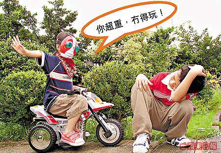 新鮮滾熱辣由日本空運到港,是最新一代《幪面超人555》電單車,不過只是迷你版。架車仔話晒都是幪面超人座駕,當然有叫座力。不過,並非個個小朋友都有資格坐,身材細粒兼體重唔過55磅的3~7歲嘅小朋友先至有得玩,否則分分鐘會「責爛」。車長70cm的迷你電單車靠充電池來推動,但記得用番個110V/220V電源轉換器才好充電,重有,千祈唔好可以在馬路上玩。
