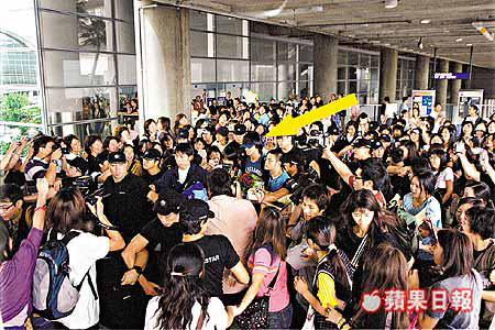 當言承旭準備登上保母車,出發到下榻的酒店時,有一名女歌迷趨前親近偶像,卻被過份緊張的保安人員批踭,並扯着她的頭髮,強行把她拉開。最後言承旭在中午十二時到達酒店,而不久後林建岳和施南生亦前後腳到達,該片女主角Sammi在昨午二時多亦出現酒店,準備為新片試造型。