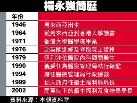 訪問前夕,在資料室翻看楊永強的舊檔案,厚厚的一叠。這位來自馬來西亞的富家公子,轉眼在香港度過近四十年歲月。打從八十年代他在伊利沙伯醫院擔任顧問醫生,名字就沒有停止見報,但他當時站的是另一方位置。他笑:「當時我負責罵人,一如現在工會代表的工作。」