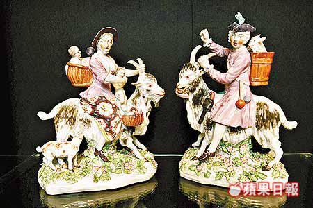 男女造型陶瓷公仔,1765年製造,一對售價9.8萬港元。