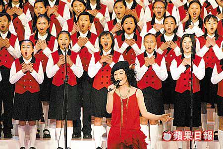 關心妍、許志安、呂方和李克勤等,昨晚出席紅館「香港同胞慶祝中華人民共和國成立五十四週年文藝晚會」,特首董建華夫婦、霍英東、賭王何鴻燊和四姨太梁安琪等均是座上客。