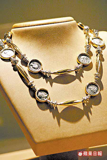 Bvlgari源自希臘,於一八八四年創立,當時憑製作古老工藝的貴重銀器雕塑成名,品牌家族除精於以不同物料如金屬和寶石製作首飾外,亦熱愛收藏古董及古錢幣,故這批精品中有一條特長黃金頸鏈,用上十二枚年代久遠、包括由公元前四十四年至公元後九十六年的古羅馬錢幣組成。