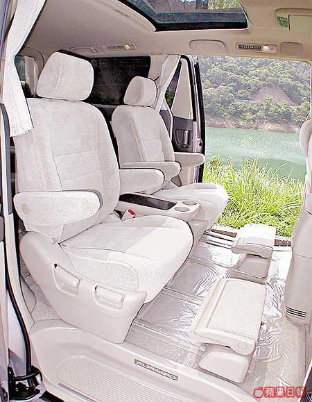 講到車廂鋪排,三排七座位設計嘅AlphardHybrid,既有雙電趟門配搭之餘,中排重有獨立手枕同腳墊;而原廠多功能行車電腦連AV系統,重備有前後雙屏幕組合,既可監控Hybrid引擎嘅正常運作,甚至乎免提式電話亦一應俱備㗎!當然少不了重有原廠前後恒溫冷氣、雙天窗、前後獨立照明及送風口,另外重有雙安全氣袋組合㖭!