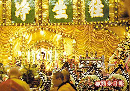 王晶在世界殯儀館的地下租了最大的靈堂為亡母設靈,由於極少數圈中人知悉王晶喪母,所以昨日靈堂所見,圈中人送來的花牌不多,較為搶眼的是文雋夫婦所送的花牌。靈堂外有十多位穿了黑衣的保安把守,而披麻帶孝的王晶,在靈堂表現一直是很平靜和堅強。