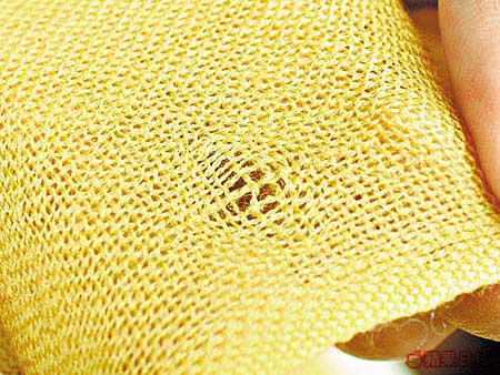 相反人造纖維(Acrylic、Viscose)較重身之外,質地粗幼一樣,纖維分布亦密得多,全無彈性可言。