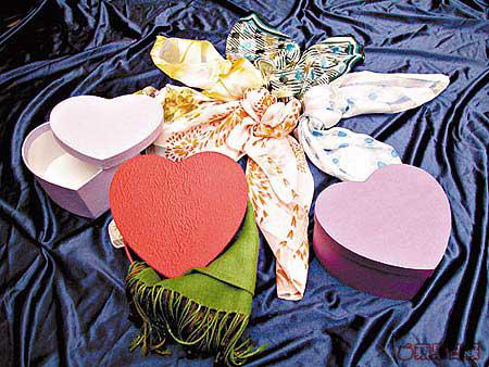 顧客買滿$300加多$5或$10就可以換購真絲絲巾一條(價錢因應絲巾大小而定),加$10重可以幫你用個靚靚心形盒PACK成禮盒裝,送畀人絕唔失禮。