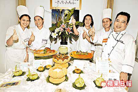 今年的泰國美食器具展,除了眾多美食及烹調材料外,主辦單位還舉辦了一個食雕比賽,參賽者全為五星級酒店的大廚,故此每件作品都如藝術品。一件件雕得美輪美奐、栩栩如生的瓜果,成為場中焦點,值得廣大飲食界人士參考。