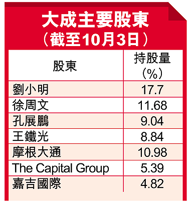 至於與日本三井集團合資的6萬噸山梨醇項目,雖可能推遲至明年底、後年初才投產,但孔氏預期大成明年營業額可望達到28億港元,較去年增近7成。