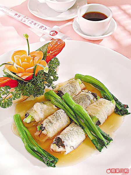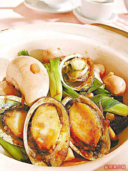 一個清淡嘅菜式。竹笙、髮菜、蝦膠混為一體,加上大大條新西蘭鮑片,打埋個玻璃芡,令素食嘅竹笙卷更見豐盈。