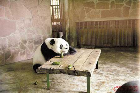 在這裏可近距離觀看熊貓,的確令人興奮。每日兩場的餵飼熊貓時間,管理員會把箭竹葉遞到觀景台前,把熊貓都引領出來,讓遊客拍照。看完大熊貓,當我們正穿梭於竹林間尋找熊貓BB時,來到一家小石屋前,隨口問句站在門外正在抽煙的管理員:「可以入內參觀嗎?」他故作神秘的為我們引路,說入內參觀不成問題,還可與熊貓近距離拍照!不過,每人要付「入場費」?10!困在籠內的熊貓莉莉正在吃蘋果,與我的距離不足一呎,管理員着我摸牠一下,我伸手入籠中輕輕摸了莉莉的頭,毛質硬硬的,但純純的樣子很可愛!