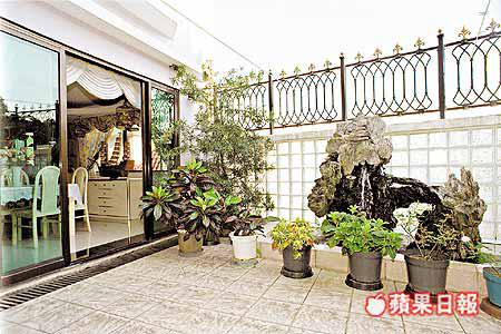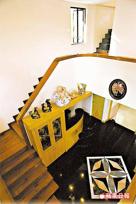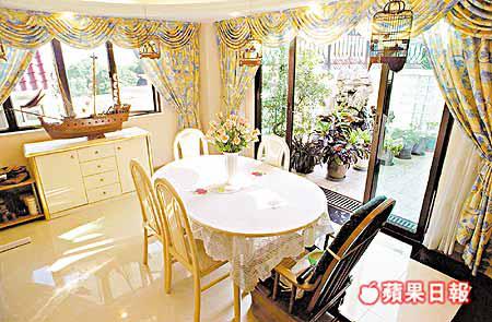 玄關很寬廣,約佔地下四分一空間,並可闢出一角建酒吧,方便款待客人。側旁是偌大的廚房。玄關右面是客飯廳,地方闊落光猛,經過玻璃趟門,通往向政府租用的花園,園內有假山魚池、盆景小樹,環境怡人。