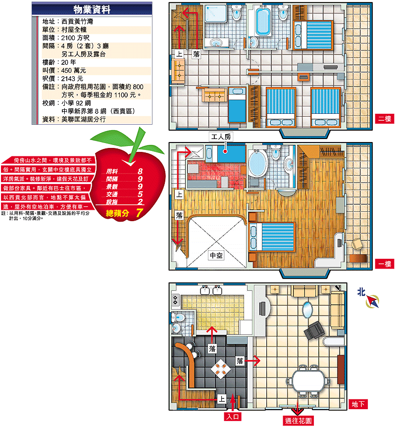 美聯徐建麟表示,黃竹灣約有50餘幢村屋,以分層為主,目前全幢放盤僅此一間,叫價450萬元,每方呎2143元,較分層呎價2200元更平。最近一次全幢村屋成交追溯至半年前,作價460萬元,呎價2190元。