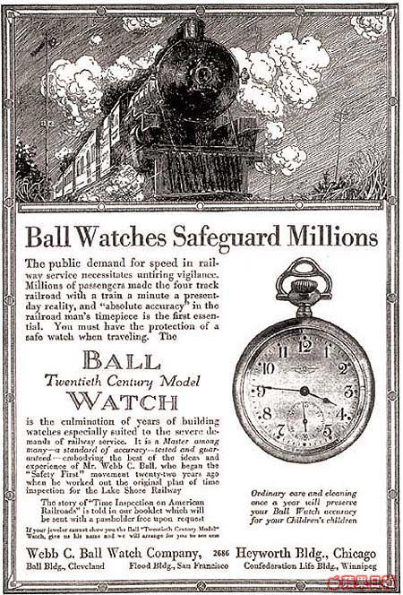 1891年,美國俄亥俄州Cleveland的一個小鎮,發生了一起火車意外,兩列火車因為四分鐘的誤差而相撞,造成車毀人亡。悲劇發生後,WebbC.Ball,受美國鐵路局的委任,生產誤差極少的時計,從而減低意外再次發生的機會。Ball這個品牌,就是以創辦人波爾的姓氏而命名,而手表型號皆以鐵路工作人員命名。Ball近年已停產,直至約五年前重出江湖,以獨特夜光設計響朵,而且每隻表都經過天文台測試證明誤差少於四秒,皆因Ball的自動機芯,能抵禦磁場對手表產生的干擾,任何惡劣環境都能提供準確時間。