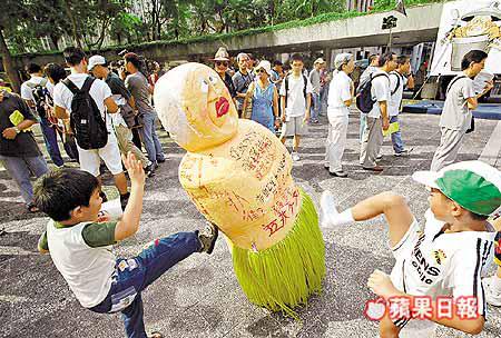在兩小時的集會期間,參與市民一面以聲音回應台上講者言論,一面以行動宣洩對董建華的不滿情緒。大會設置在台下的董建華「不倒翁」造像,被市民寫上「有你一日,永無寧日」等不滿語句。