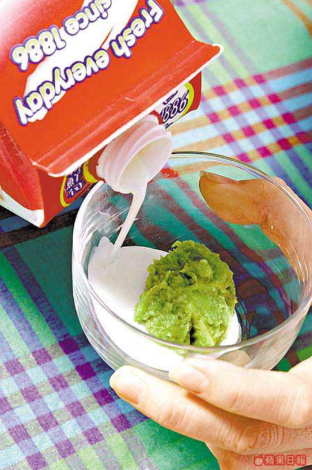 方法:將牛油果去皮去核搗成茸,加上少量牛奶攪成糊狀抹於全臉,敷5至10分鐘,用水洗淨便可。