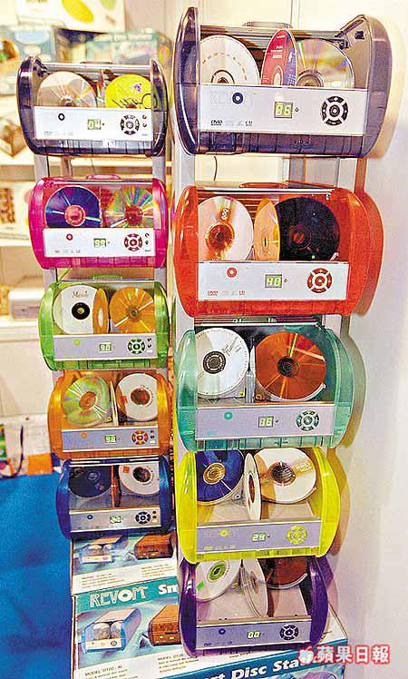 本地設計的光碟儲存盒,每個容納100隻光碟,用戶可先為光碟編上號碼,然後按編號找出所要光碟;儲存盒可叠起來使用,每個出口價為218港元。(威馬國際)