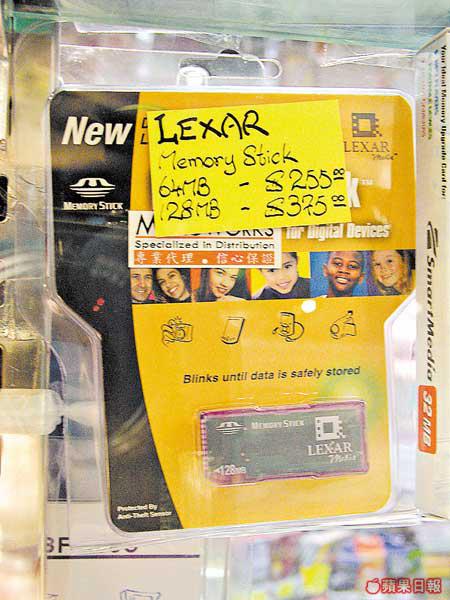 MemoryStick一向都屬富貴級嘅記憶卡,不過最近就平咗唔少,尤其SONY開放MS製造予其他廠商後,售價就更進一步下跌。好似呢張LEXARMS就吸引唔少用家,128MB都只係$375,兼且比原廠MS更靚仔,難怪令到唔少用家自動過檔。