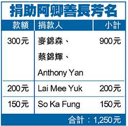 三十四歲的阿卿去年與丈夫離婚,她靠任職影音製作公司,養活患有先天性脊柱裂、下肢癱瘓的十一歲女兒,奈何近日她遭僱主拖欠薪金,以至與女兒生活陷困。蘋果基金曾撥八千元緊急援助金予她,日前另將善長捐款合共一千二百五十元交予阿卿簽收。阿卿向讀者道謝之餘表示,母女已獲社署發放綜援金,生活暫時不成問題。 捐款編號:C0979 暖流熱線 電話:29908688 傳真:23702192 電郵:[email protected] 網址: http://www.charity.atnext.com