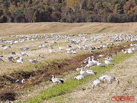 來到用木板搭建而成的觀鳥亭,早已擠滿看雀的人,單憑肉眼我其實甚麼也看不到……好不容易等到望遠鏡了。嘩!好多好多小鳥啊!咦,何解有輛馬車嘅,我也可以坐嗎?後來聽導遊說,馬車是用來接工作人員到田裏照顧初生的小鵝。因為這裏的鵝(SnowGoose)是研究環境的重要因素,所以受到保護。有專人照顧?在加拿大連做鵝也特別幸福!