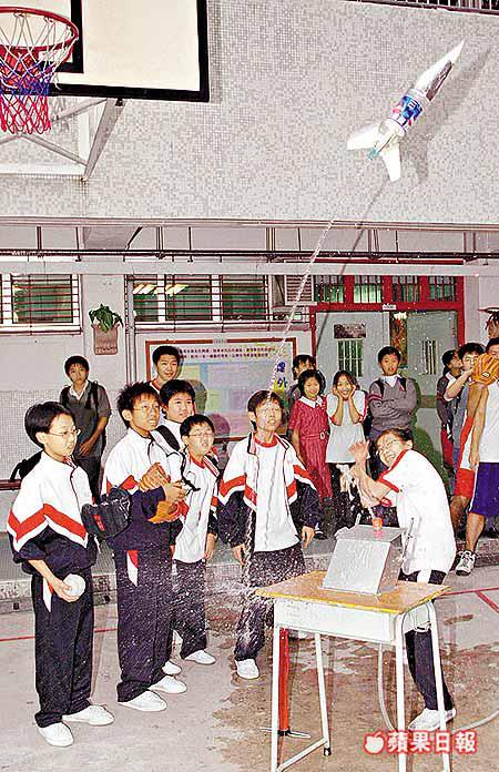 校方昨舉辦水動火箭工作坊,向參賽同學講解製作原理,學生隨即用一點二五公升的汽水膠樽製作水火箭進行發射測試,測試大致順利,但其中一支火箭因水壓太大,在發射時突然爆破,幸未造成任何意外。