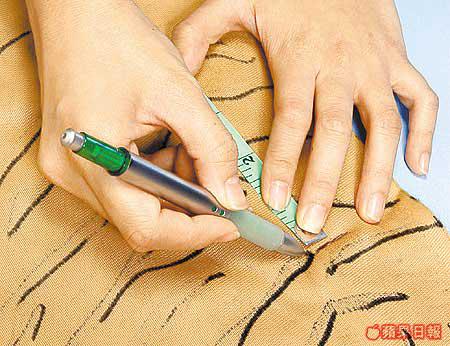 每張摺椅的尺寸不同,但做法大同小異,但要留意每張椅的「骹」位,剪布料前緊記留下半至一吋的黹口位,即使量度時出了偏差,做得太小而未能套在椅子上,也可即時改動,避免浪費布料。
