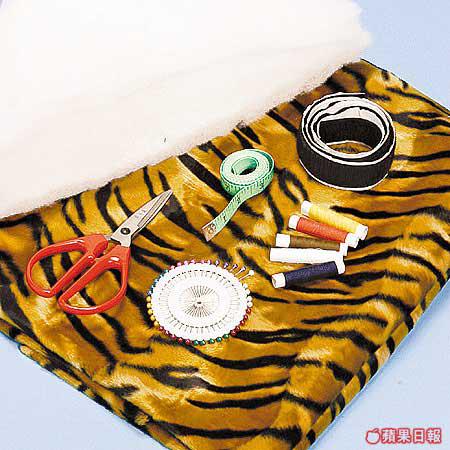 材料:毛毛布1碼($50)、夾綿1碼($20)、魔術貼1碼($16)、針線、軟尺、剪刀。