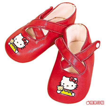 HelloKitty紅鞋兒用軟皮製成,最適合幾個月大BB穿着,用魔術貼代替鞋扣,穿着方便。
