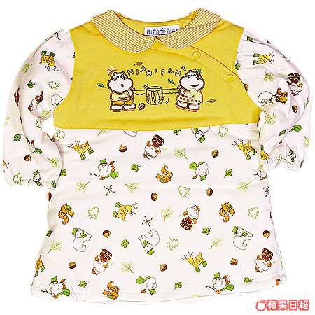 HIPOFANT的夾棉衫仔花款多多,其中這件圓領夾棉裙仔就最適合BB女,黃色碎花圖案加圓反領,夠晒可愛,夾棉柔軟保暖,冬天着唔怕冷親。