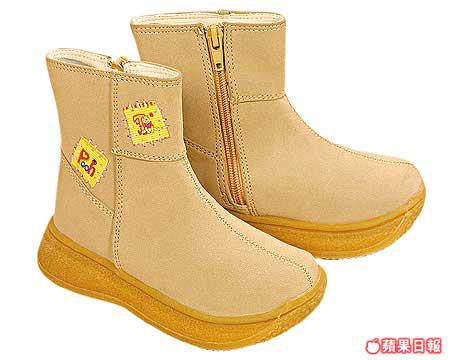 杏色WinniethePooh麖皮短靴,生膠鞋底,有少少鬆糕,款式勝在夠簡單!