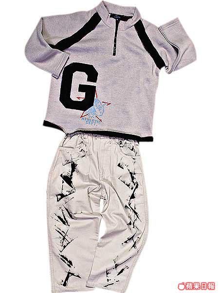 法國ORCHESTRA亦在減價之列,這件毛巾質地的企領T恤,內裡是抓毛,質地較薄且柔軟,襯埋條開叉喇叭腳牛仔褲,型得斯文。